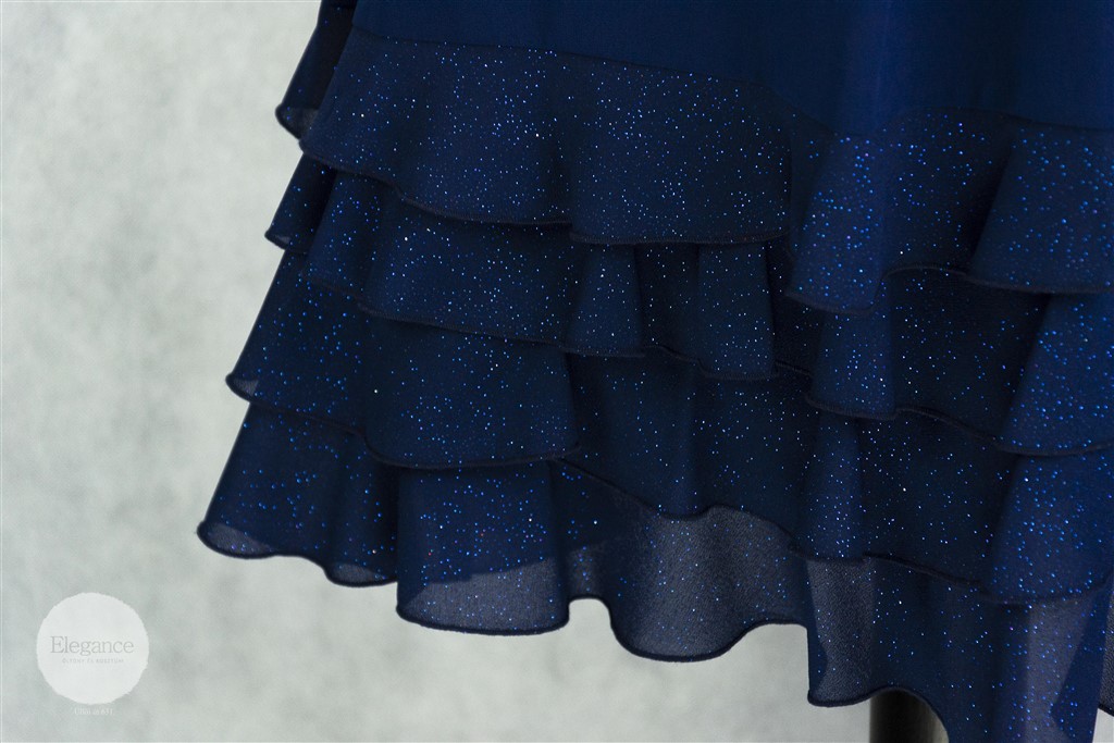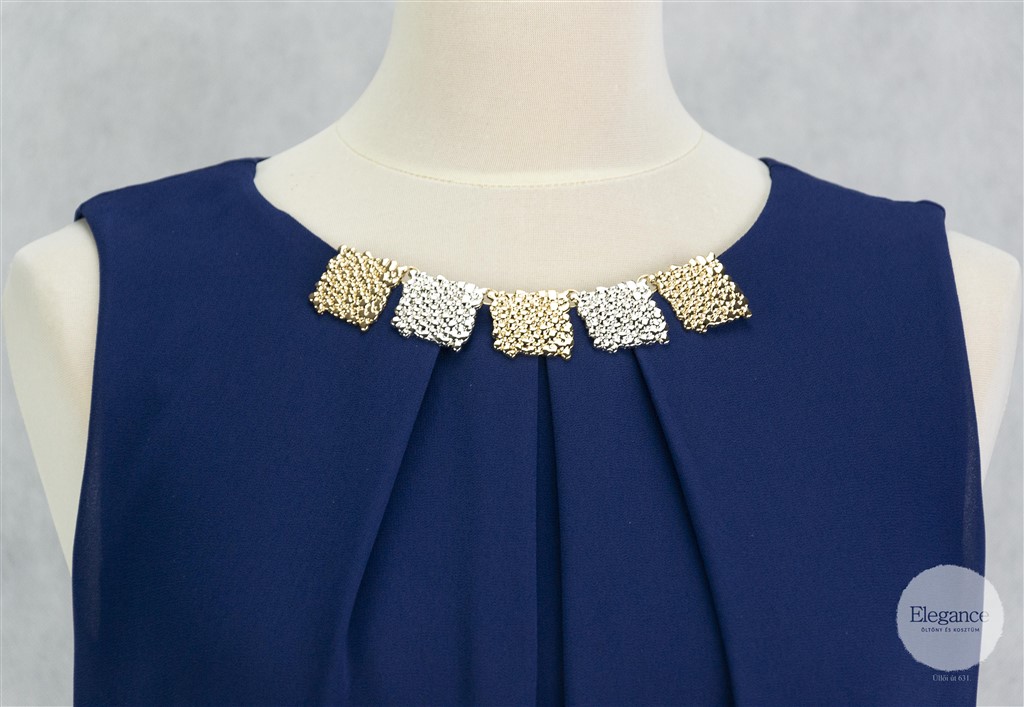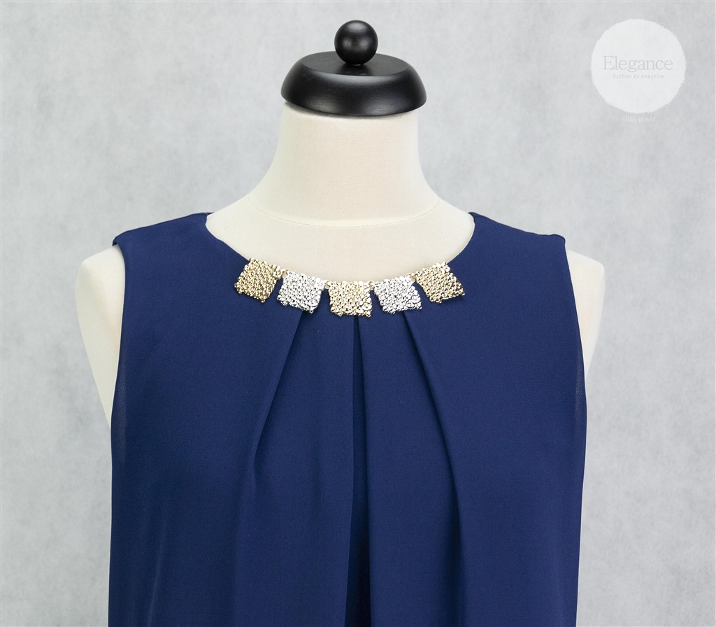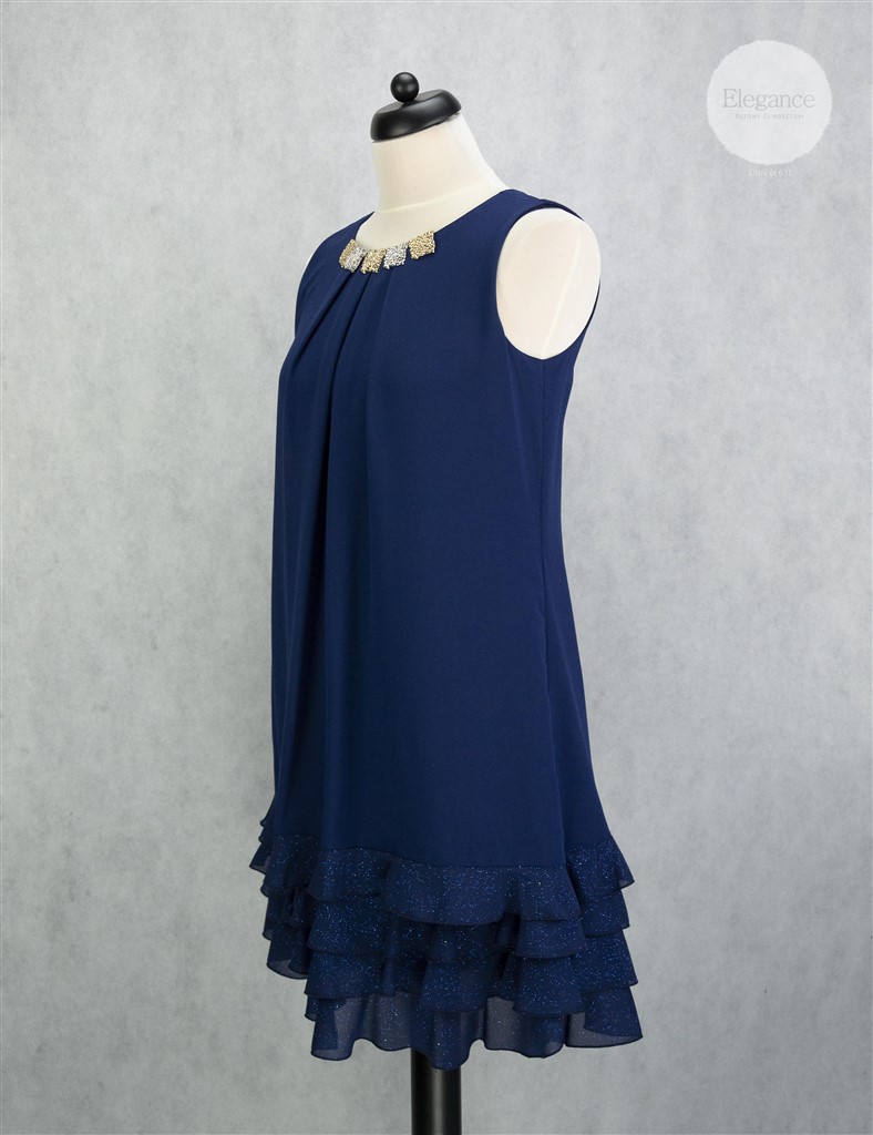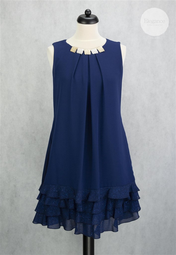 Sötétkék, A vonalú, alul 4 kicsi fodorral díszített ujjatlan ruha.