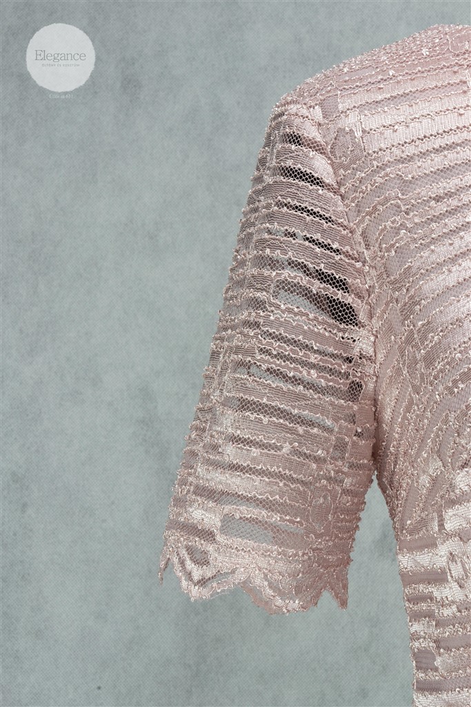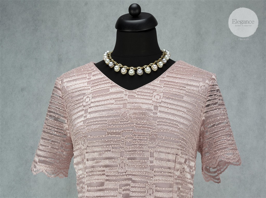 Rózsaszín rövid ujjú alakalmi ruha.