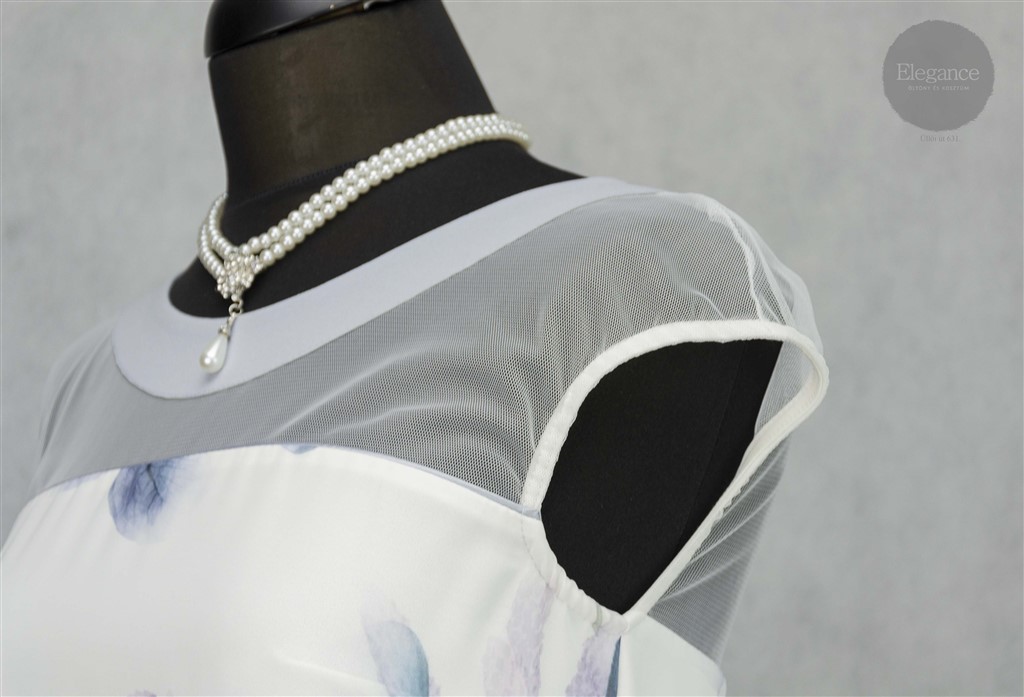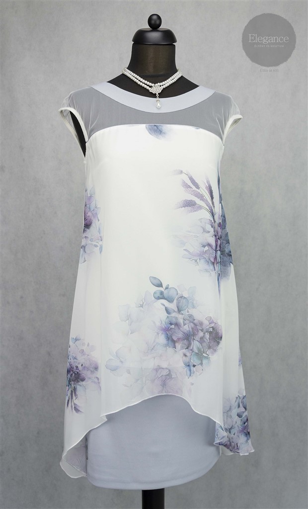Ujjatlan , pasztell színű alakalmi ruha, rávarrt muszlinnal.