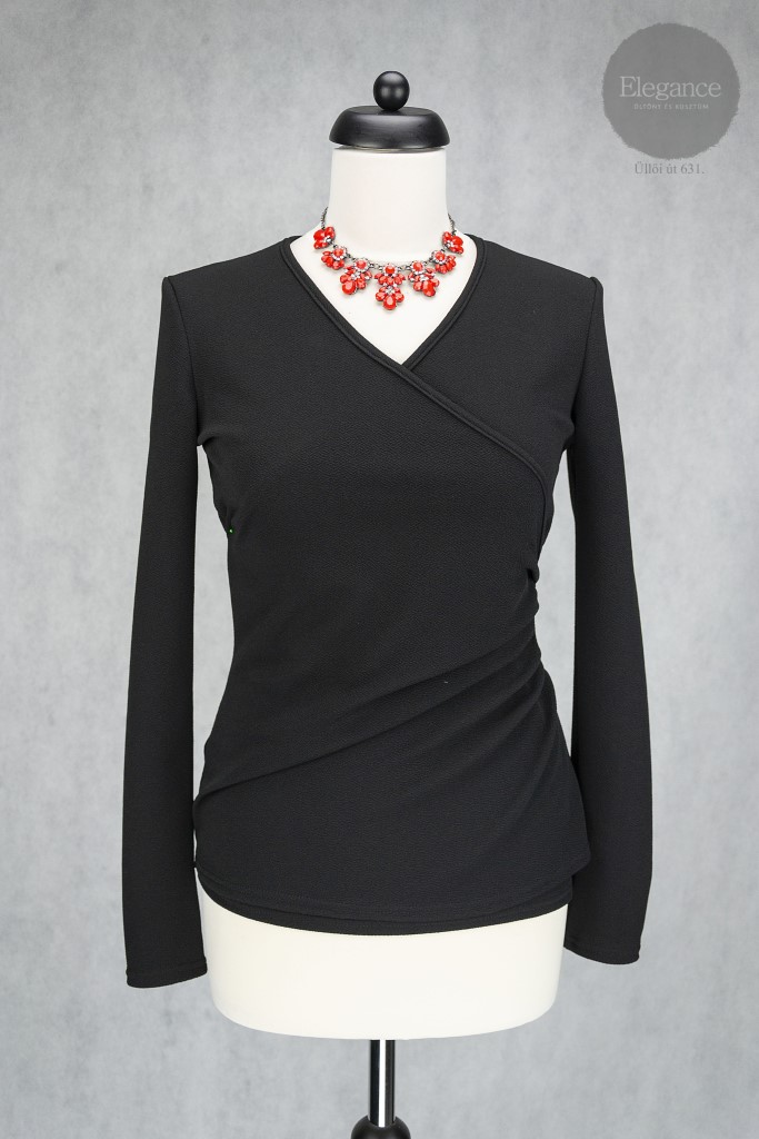 Fekete színű, átlapolt, hosszú ujjú felső.