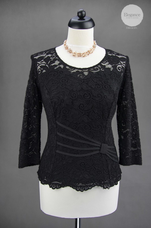 Fekete, alkalmi csipke felső.