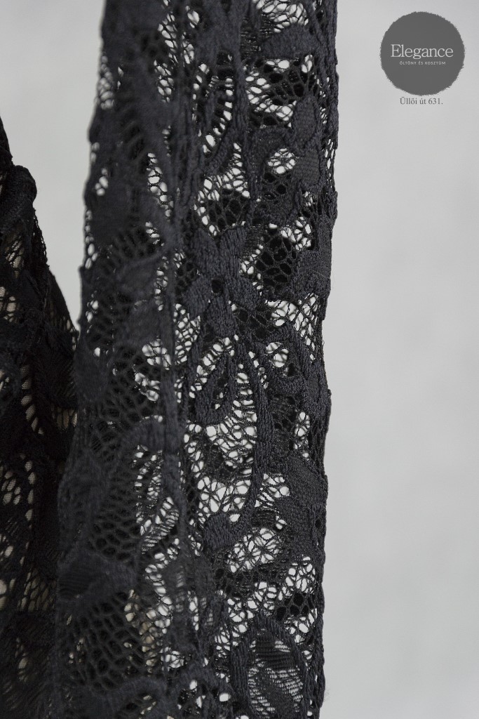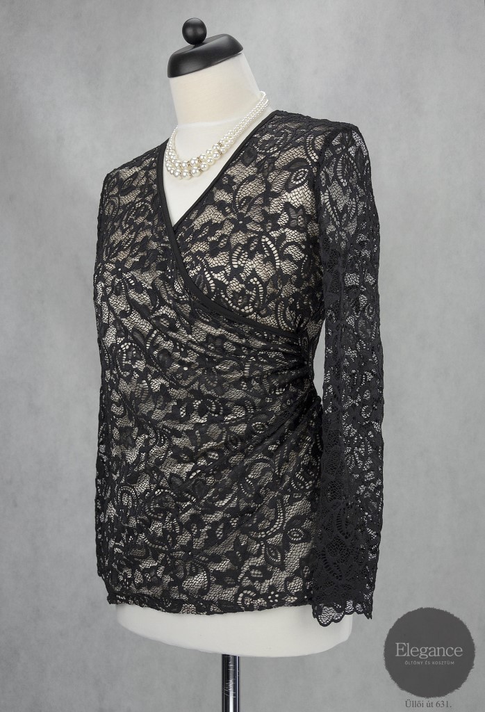 Ekrű színű, fekete csipke rátátes alakalmi felső.