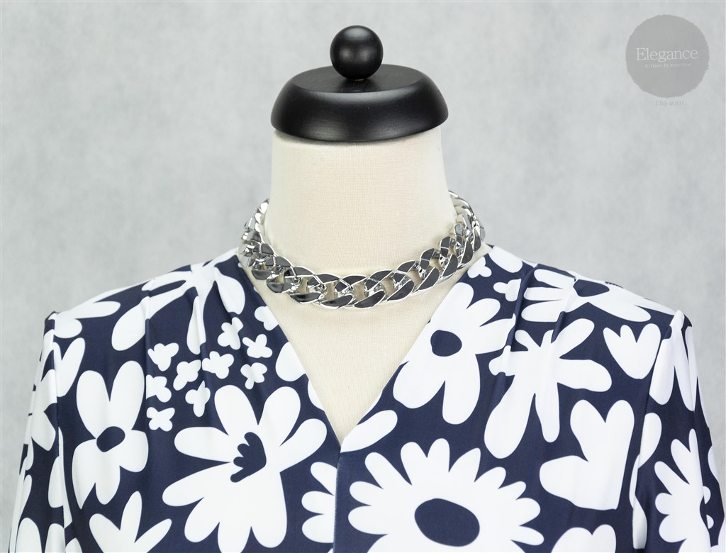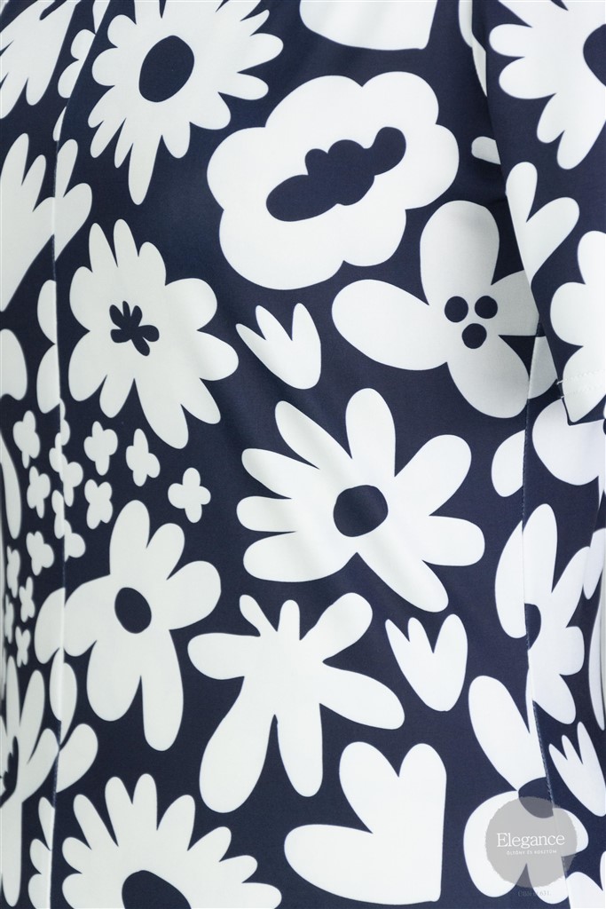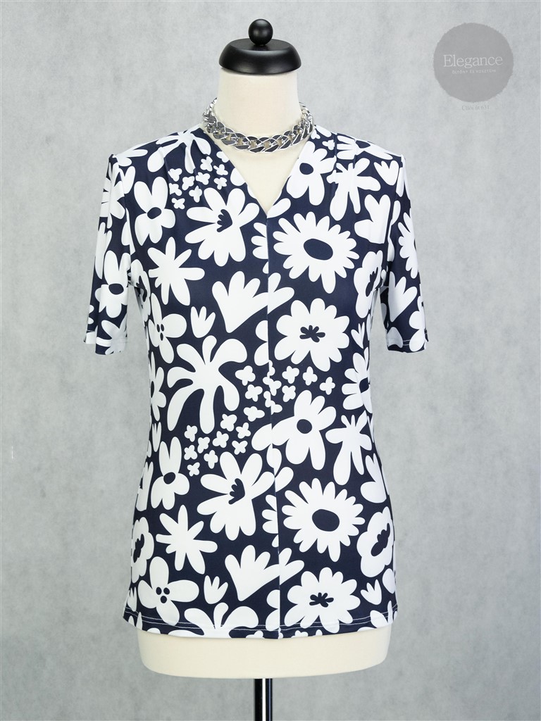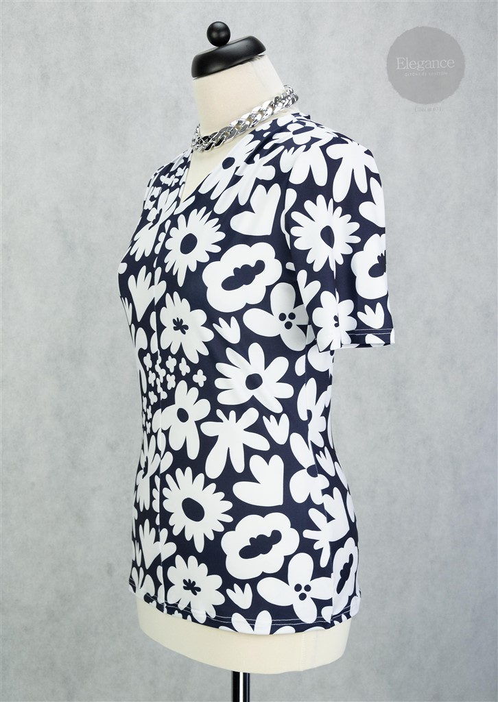 Rövidujjú sötétkék-fehér mintás felső kényelmes, kevertszálas elasztikus anyagból