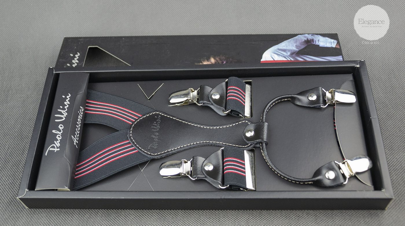 3,5cm széles,fekete alapon piros csíkos nadrágtartó.