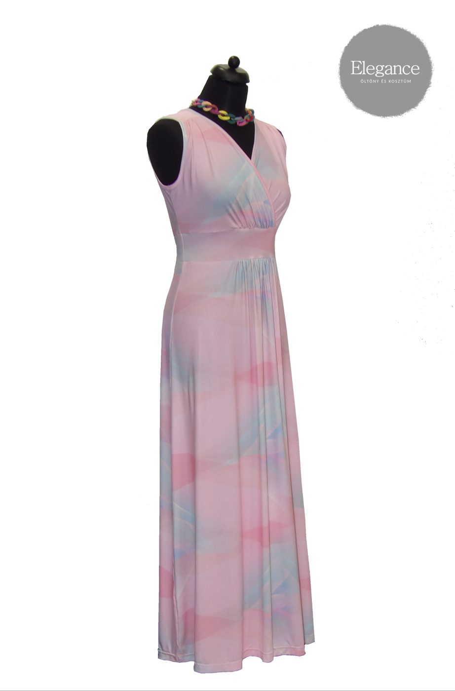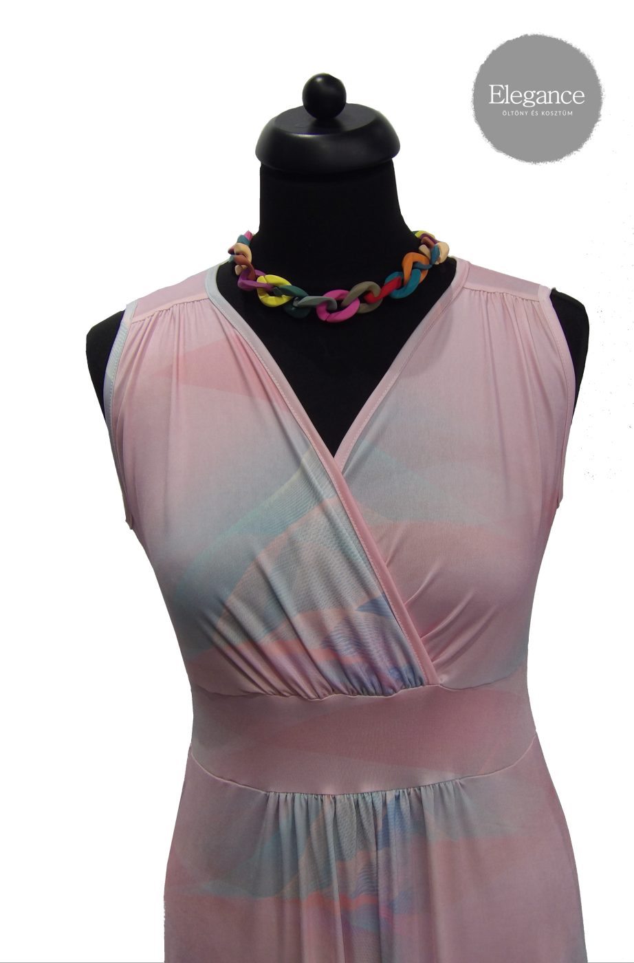 V kivágású, hosszú, elöl húzott nyári ruha.