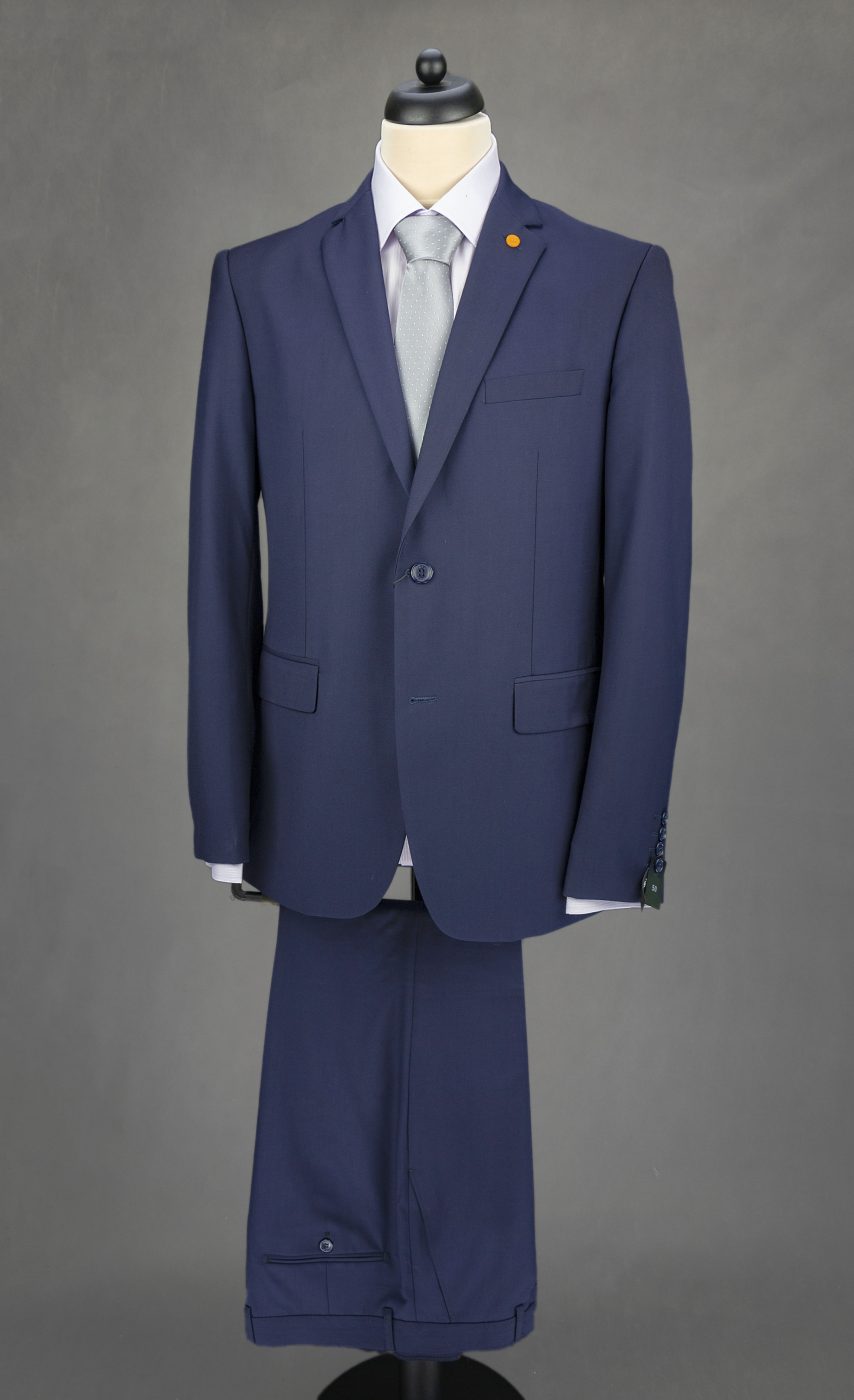Kék színű, regular fit öltöny, 55% gyapjúval.