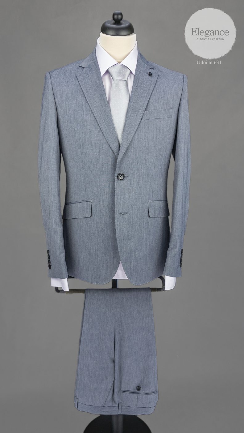 Szürke színű slim fit öltöny, 20% gyapjúval.