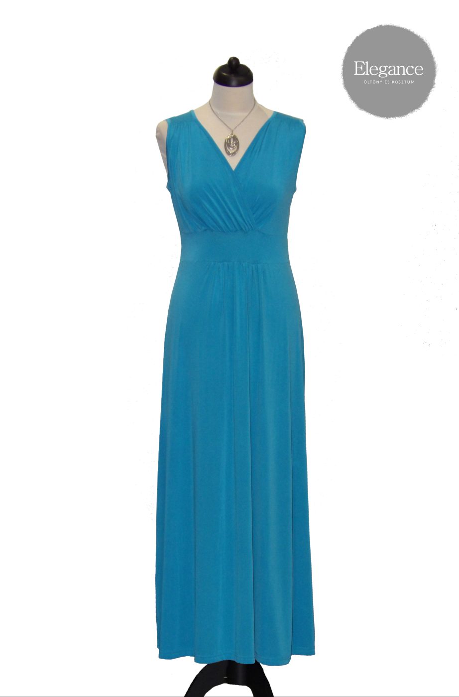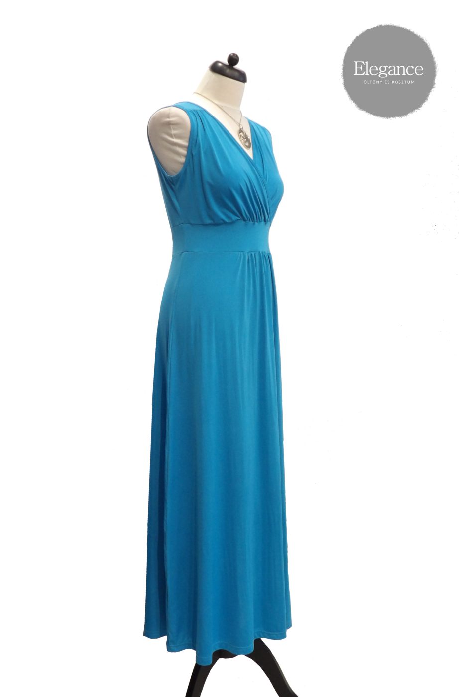 Kék, hosszú, V-kivágású ruha